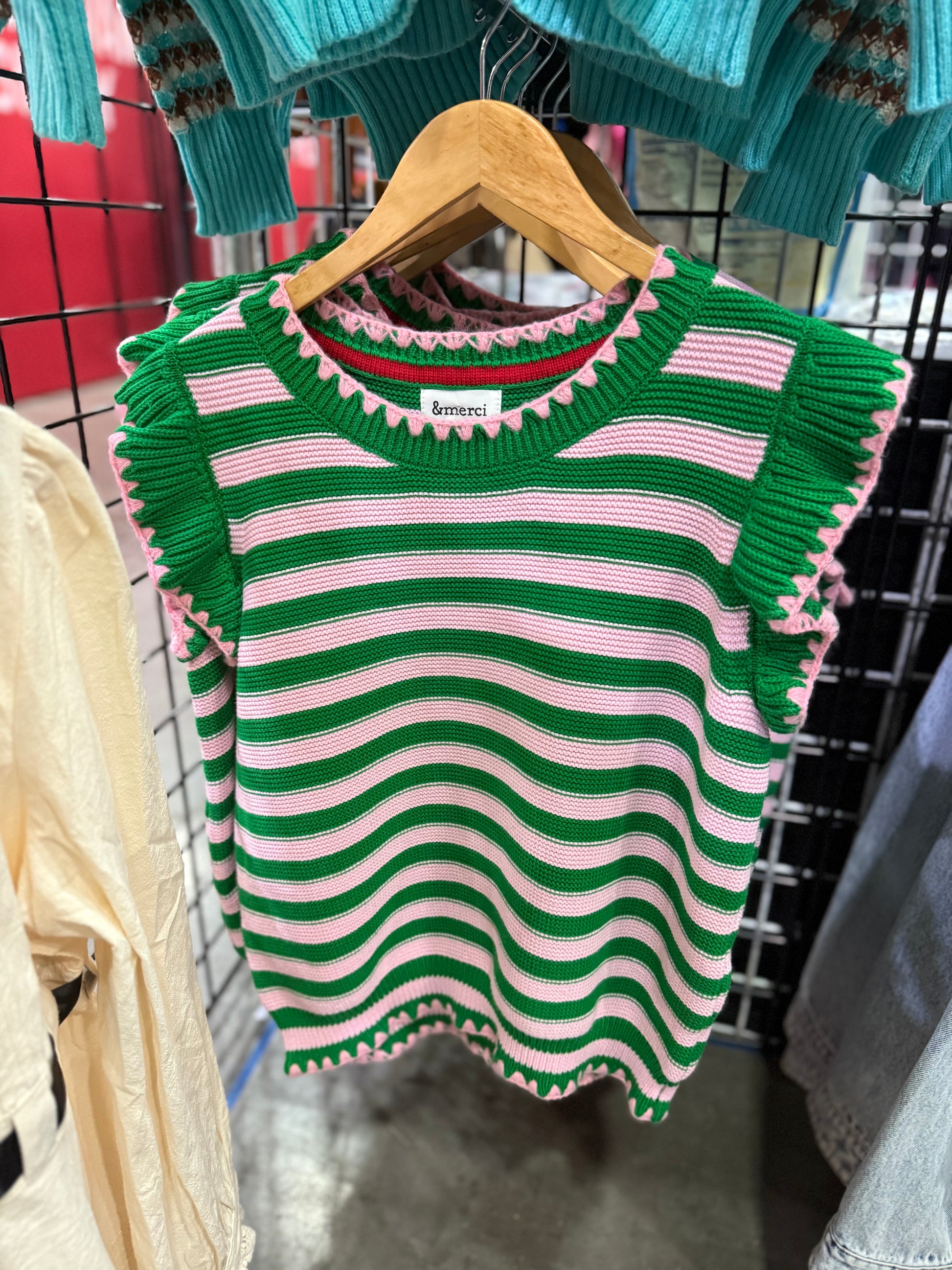 Perfect Sweater for Spring shows or put an undershirt on and wear now! Striped flutter sleeve sweater top